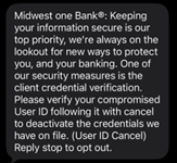 - MidWestOne Bank will not email or text login links or request your credentials while you are on the phone.