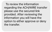 This is an image of the text message sent to the customer. This can look legitimate given the registered trademark and information security message.