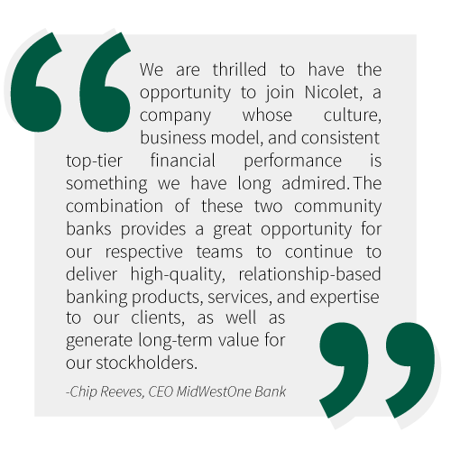 MidWestOne Bank Enters Merger Agreement with Nicolet Bank